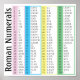 Este poster tiene los números 1 a 100 y los números romanos por cada número que hay junto a ellos. Los números están en tiras de colores, con los números romanos a su lado en una caja blanca delineada con la misma tira de color. Tiene los "números romanos" escritos a la izquierda. Resulta práctico si necesita una referencia a números romanos.