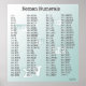 Este poster tiene los números romanos 1-100 enumerados en 4 columnas. Hay 5 números dispersos sólo para añadir complejidad.