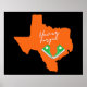 El homenaje de Uvalde y el diseño poster pro reforma de armas presenta la silueta de estado de Texas naranja con altos Chucks verdes y el texto "nunca olviden" sobre fondo negro.