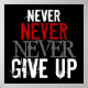 Nunca jamás se rindan. Diseño Motivacional De Elke Clarke ©2010. Personalizar con tu elección de colores. Ideal para oficinas y espacios de trabajo. Arte poster motivacional y a la vez de moda. En la GALERÍA MONOGRAM, disfrutamos usando letras para crear diseños agradables. Para el desafío poster de Zazzle pensamos que tomaríamos la economía y el año pasado en consideración al elaborar nuestro diseño. La frase no es nueva pero la visualización gráfica y el mensaje previsto resuena más que nunca con todos nosotros. ¡Nunca Se Rindan!