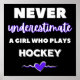 Nunca subestimes a un chica que juega hockey. Por el chica o la dama que ama el hockey. Gran regalo para Navidades, cumpleaños, día de la madre, "sólo porque" o por ti mismo.