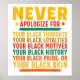 Nunca te disculpes por tu Poster de historia negra ¡Tus paredes son un reflejo de tu personalidad, así que déjalos que hablen con tus citas, arte o diseños favoritos impresos en nuestros posters personalizados! Elija entre hasta 5 tipos de papel únicos y de alta calidad para satisfacer sus necesidades creativas o empresariales. Todas son excelentes opciones que cuentan con una superficie lisa y sin ácidos con una impresión de color vibrante. Examine los posters de tamaño estándar o personalizado y las opciones de encuadernación para crear arte que sea una representación perfecta de usted.