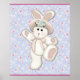 Bailando conejo de juguete blanco con gorra rosado y flores. Un conejito adorable para niños o adultos. Es muy agradable para Pascua o para todo el año.