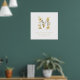 Delicate Romantic Floral M Letter in Gold Glitter Effect Posters for Nursery Decor.