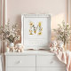 This poster features the letter M in a romantic and delicate design, adorned with an elegant floral motif and a subtle gold glitter effect. The fine details and soft color palette create a cozy and sophisticated atmosphere, adding a touch of tenderness and timeless style to the nursery decor. Each floral element and the golden sparkle combine to reflect light and warmth, offering a harmonious and elegant visual appeal.