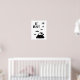 Decora el cuarto de tu pequeño tesoro con este adorable póster moderno en blanco y negro de estilo escandinavo sé valiente con montañas, pequeñas nubes, sol y un lindo coche. © Julie McIver