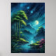 Póster Oasis iluminado por luna, encantador bosque de bam