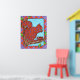 This fluffy red squirrel sits on a highly detailed tree branch, contentedly nibbling on an almond from a Mexican-patterned bowl full of mixed nuts, showing off her intricate and colorful Oaxacan-style markings. The entire scene is surrounded by a matching Mexican-style border.