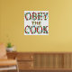 Obedezca la divertida cocina de Cook diciendo decorada con coloridas luces de Navidades de vacaciones en rojo, verde, amarillo y azul. Debes obedecer al cocinero si quieres comer tu cena. Por MomsRetro.