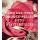 Obra maestra de la cita de Dios inspiradora. Hermoso fondo floral con bordes florales negros y blancos con una sola rosa rosa en el centro. Con la cita motivadora, "Dios puede convertir las piezas rotas en obras maestras", cita cristiana Inspiradora y motivacional. Más en nuestra tienda, en el frente de abajo: Cita la vida.