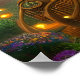 Un bonito poster vertical creado con software de representación de IA cuenta con una casa de árbol y observatorio de estilo Steampunk con habitaciones de cúpula y ventanas redondas.