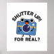 Shutter Up For Real Funny Camera Photography Pun incluye una cámara linda que parece sorprendida. Perfecto regalo de juego de palabras para la familia y amigos que aman los adorables juegos de cámara.