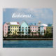 Casas de colores pasteles a lo largo de la orilla del mar en las Bahamas.