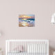 Ocean Waves on the Beach in the Sunshine Art Poster - shows the sunshine dancing on the ocean's surface and peering our from the clouds creating the most beautiful pastel hues of peach, pink, golds, yellows, lavender and purples. This comforting and beautiful ocean waves on the beach poster is calming and healing to the spirit with its pretty colors and dramatic never-ending sea and waves crashing on the sand of the beach. It feels comfortable and encouraging at the same time. The artwork was created from my hand-rendered paintings of the ocean and sea waves from the seashore beach to put into generative content and make this memorable dramatic and beautiful seascape artwork for everyone to enjoy. Created by CricketDiane 2025 and Cricket House Studios Art and Design.