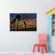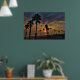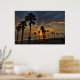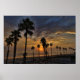 Espectacular puesta de sol con altas palmeras y el Océano Pacífico cerca del Océano, California (Estados Unidos).