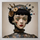 Muñecas mecánicas con dibujos + casco. Diseño en poster cuadrado.