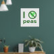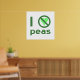 Odio los guisantes. El diseño usa letras verdes, un corazón verde y el cartel internacional "NO" para leer "Odio los guisantes". Para los que no les "dan corazón", realmente les desagradan, pero tienen un sentido del humor (humor), les encanta reír y les hacen cosquillear su hueso gracioso.