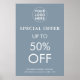 El Poster especial Dusty Blue de Oferta Final de Venta con un elegante fondo azul polvoriento con un texto atrevido y llamativo anunciando ofertas especiales y descuentos de venta final. Su diseño limpio y su llamativo color lo convierten en una herramienta eficaz para atraer la atención y impulsar las ventas.
