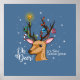 Este es un dibujo de un ciervo que parece molesto porque sus cuernos están cubiertos como un árbol de Navidad. Incluso hay una estrella brillante en la parte superior. Dice "Oh ciervo, es esa temporada otra vez..." También puedes ver nieve en el fondo.