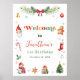 Qué divertido poster de bienvenida de la fiesta de cumpleaños de Navidad.