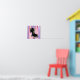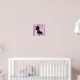 Unicornio de color mágico negro con orejas rosa pastel y oro oscuro y mané negro y cola sobre una fantástica cortina de tonos violeta y rosa con acentos dorados. Una adición colorida y única a un fiesta de unicornio.