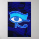 Póster con el Ojo de Horus, el símbolo de protección en el Antiguo Egipto con diseño texturizado. Este diseño de impresión en metal presenta el Ojo de Horus en tonos azules sobre Ojos de Horus desvanecidos en el fondo.