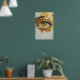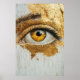 Una pintura de un ojo de estilo minimalista y rústico con detalles estéticos de oro