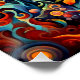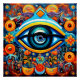 A.I. la impresión de un ojo grande y colorido está rodeada de vibrantes patrones psicodélicos florales surrealistas y formas abstractas giratorias.