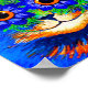 Poster con la pintura de animales de Louis Wain Cat Flower Eyes (1860-1939). Un gato arco iris sonríe ampliamente. Las flores azules le cubren los ojos. Un regalo maravilloso para los amantes de los gatos y el arte inglés.