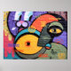 Graffiti rosa, amarillo, púrpura, negro, blanco, gris, azul ojos poster de mensajes de paz y amor