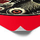Este escalofriante poster de Halloween presenta una mansión siniestra y embrujada bajo un cielo rojo sangre, rodeada de ojos inquietantes y atentos. Frente a la casa hay una figura solitaria, bañada por la luz de la luna, mientras que las nubes y murciélagos ominosos crean un ambiente amenazador.
