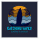 Celebre los interminables días de verano con este diseño de surfboard de inspiración vintage con una atrevida puesta de sol, olas del océano y siluetas de palma. Ideal para los amantes del surf y de la playa que viven para la emoción de las olas y la creación de inolvidables recuerdos costeros. Un homenaje perfecto a la libertad tropical y a las vibraciones retro.