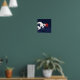Olas japonesas azules de la marina con Poster de dibujo de la luna roja