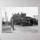 Vintage antique car and gas station photo. Described as "Turnning City" at LOC. Probably actually Twining City, which is a neighborhood in Washington D.C. Notice the beautiful old visible gas pumps.