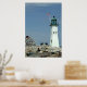 This image of the Scituate lighthouse shows the light tower as seen from the low tide mark. Thus the light's height and beauty are enhanced. The old battle-scarred lighthouse looks quite elegant from here.