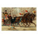Victorian sisters riding in a horse sleigh with a dog running besides them in the snow. Nostalgic vintage christmas illustration by Mary Evans.