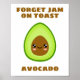 Carácter aguacate lindo con texto que dice: "Olvídate de la mermelada en tostada, aguacate".