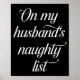 Póster On My Husband's Naughty List Funny Husband Wife Co