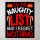 Póster On The Naughty List And I Regret Nothing Funny Chr