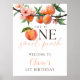 Póster One Sweet Peach 1st Birthday Welcome Sign