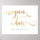 Póster "Open Bar" Bebidas de oro Rótulo Boda