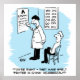 Regalo divertido para óptico. Óptico realizando una prueba de vista confirma que la tabla de la pared efectivamente dice "Impreso en China".