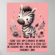 Añada un toque de inspiración al espacio de su hijo con este hermoso poster con una cebra de Woodland y una sincera oración cristiana en un fondo rosa bonito. El poster muestra una cebra encantadora en medio de un bosque, creando un ambiente sereno perfecto para la reflexión. La oración dice: "Querido Dios, que acepte mis cualidades únicas con el orgullo de una cebra. Ayúdame a celebrar quién soy y a respetar las diferencias de los demás. Amén". Este mensaje significativo anima a los niños a adoptar su singularidad y apreciar las diferencias en los demás, convirtiéndolo en un adorable y estimulante agregado a un dormitorio, sala de juegos o aula.