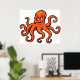 Póster Orange Octopus Cartoon Ocean Sea Creature