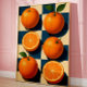 Add a bold burst of color to your space with this retro-modern orange fruit art print, featuring six juicy oranges arranged on a striking blue-and-white checkerboard background. This vibrant design blends vintage kitchen aesthetic with contemporary pop art vibes, creating the perfect balance between playful and polished.