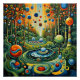 A.I. creó la composición abstracta surrealista de esferas, orbes, globos, hojas dentro del follaje.