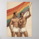 Vintage estilo de propaganda soviética de ilustracion de dos compañeros con una bandera del orgullo.