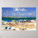 En Orient Beach, St. Martin, hay sombrillas y tumbonas de colores que bordean la soleada playa de arena blanca con vistas al mar Caribe