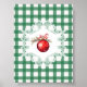 Póster Ornamento de Navidad Rojo Fiesta Verde de Gingham