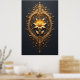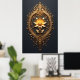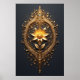 Póster Ornate Gold Frame With Large Metallic Flower Medal